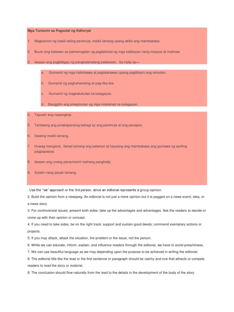 Mga Tuntunin Sa Pagsulat Ng Editoryal