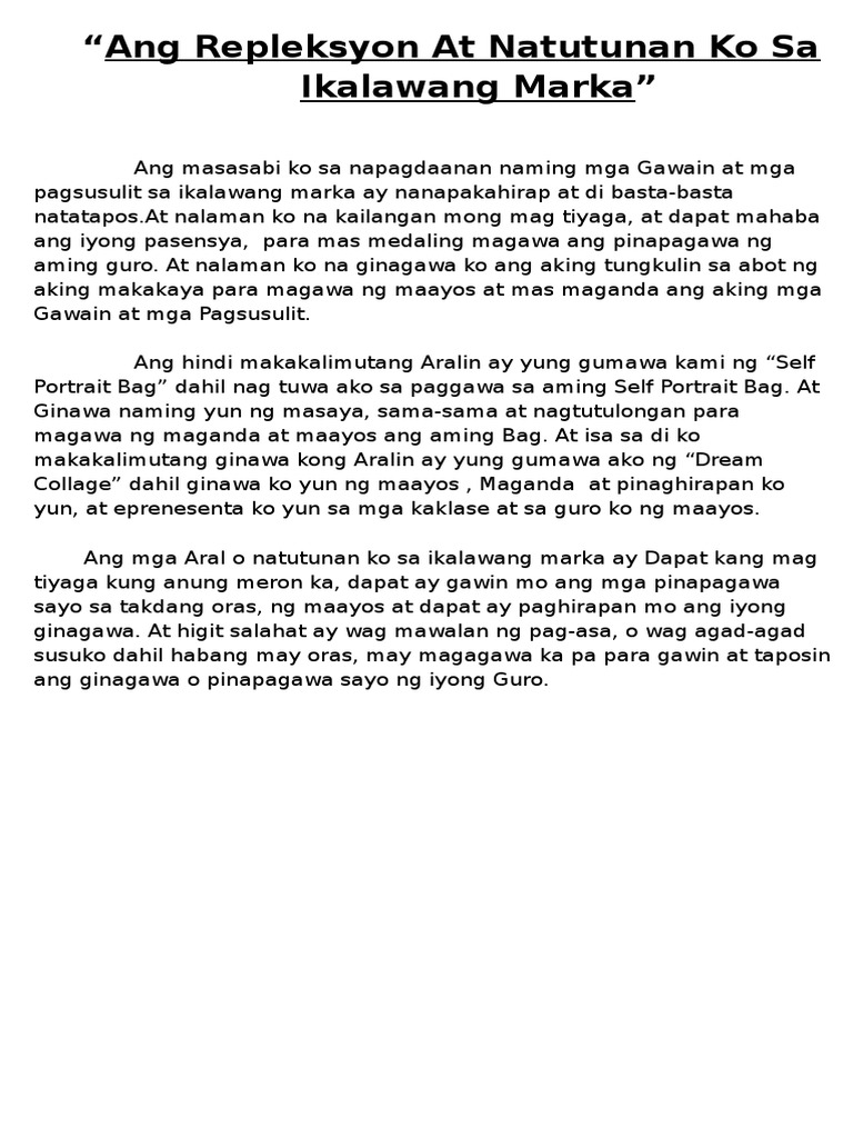 Ang Repleksyon At Mga Natutunan Ko Sa Ikalawang Marka