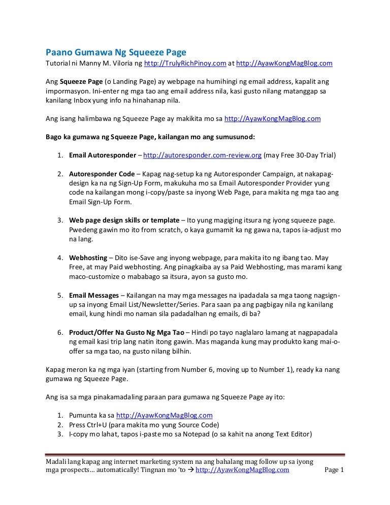 Paano Gumawa Ng Squeeze Page Manny Viloria
