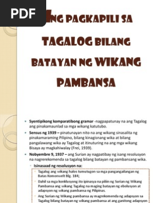 Ang Pagkapili Sa Tagalog Bilang Batayan Ng Wikang